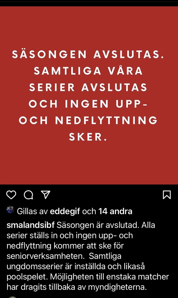 Idag kom beslutet från Smålands och svenska innebandyförbundet. Samtliga serier och poolspel stängs ner och inga ned/uppflyttningar kommer ske i seniorserierna. Vilket betyder att innebandysäsongen är slut. I samband med detta har också beslut tagits att enstaka matcher inte längre är tillåtet. Under vecka 9 kommer endast de lag födda 2006 eller senare att träna, övriga lag har uppehåll minst veckan ut. Givetvis kommer flera lag fortsätta träna några veckor/någon månad till innan vi lämnar över till fotbollen och hoppas att deras säsong kan bli mer fotboll än pandemi-anpassningar. Vi tar nya tag och hoppas på en hejdundrande säsong 21/22. Vad gäller den kommande säsongen bör alla tränare i föreningen fundera över hur konstellationerna kring lagen ska se ut. Vissa lag är för många spelare, andra är för få. Vi återkommer med möte kring detta under april månad. Håll i och håll ut. /Innebandysektionen Gransholms IF 26 feb 2021 0kommentarer