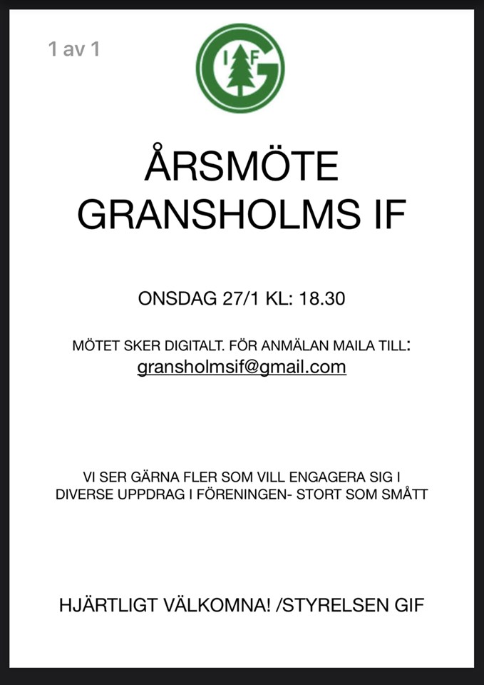 Dags för årsmöte. Välkommen med din anmälan! Gransholms IF 12 jan 2021 0kommentarer