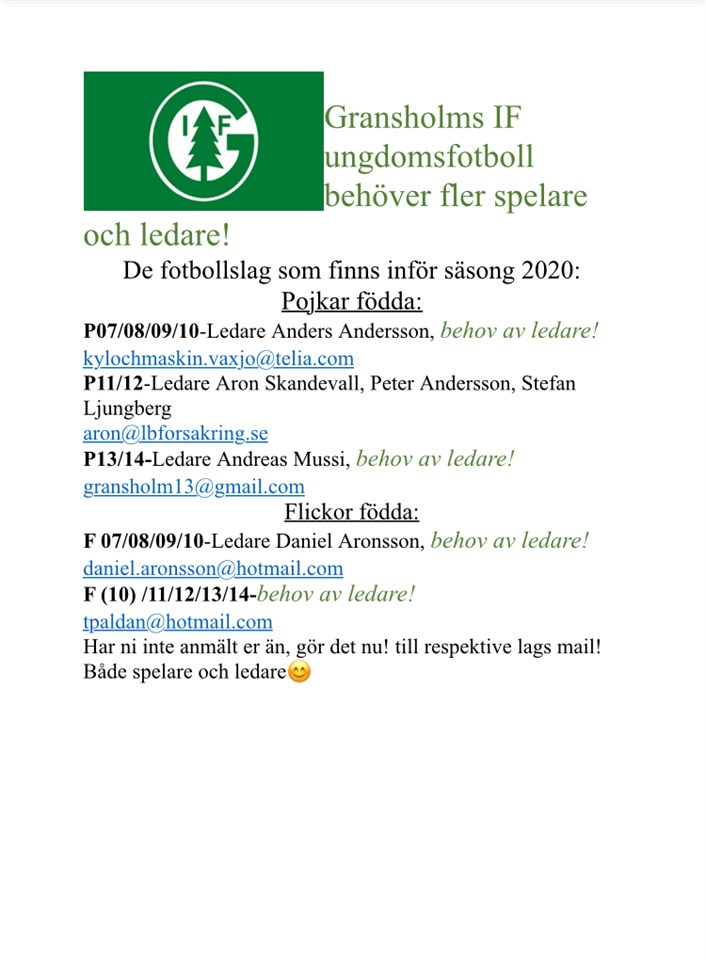 Tips på aktivitet för våra gemlaungdomar och ledare sökes! Gransholms IF 10 feb 2020 0kommentarer